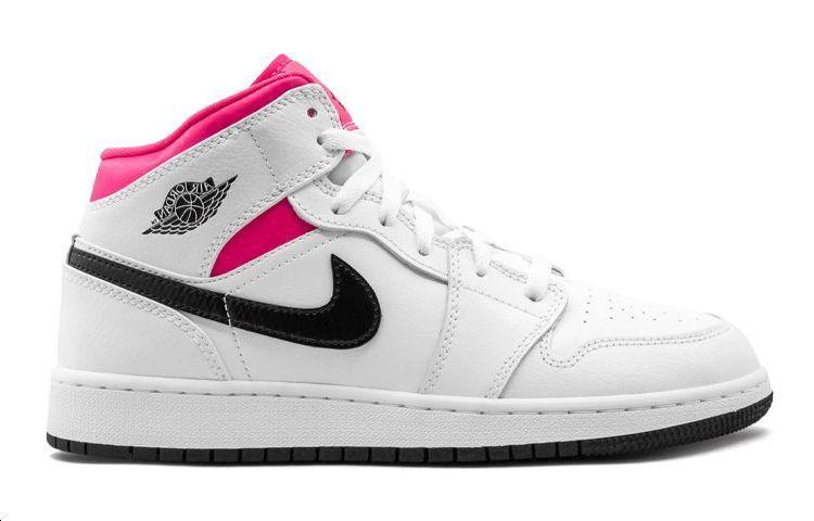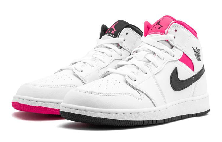 Кроссовки Jordan Air Jordan 1 Mid White Black Hyper Pink GS оригинал 84342589